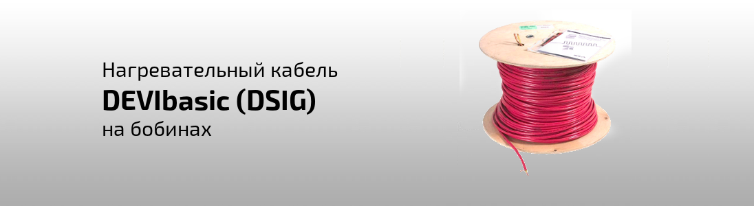 DEVIbasic (DSIG) – модельний ряд одножильних наревательних кабелів на бобінах. Застосовується для зовнішньої і внутрішньої установки. Використовується для систем захисту від снігу та льоду на наземних майданчиках, обігріву труб і грунту, в бетонних підлогах. Виготовляється як одножильний екранований нагрівальний кабель без сполучних проводів. Поставляється під замовлення. Максимальна довжина кабелю на одній бобіні 1800 м