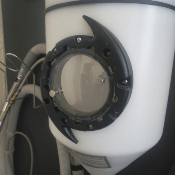 В процессе уборки из системы водопровода в агрегат автоматически подается вода. Пыль, смешиваясь с водой, попадает внутрь контейнера. Через определенное время срабатывает автоматика и загрязненная вода сливается в канализацию. Агрегат оборудован дополнительным фильтром-сеткой, который предохраняет попадание крупного мусора в канализацию.